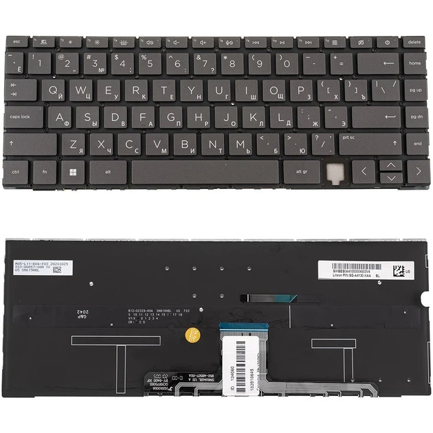 Клавіатура до ноутбуку HP (14-EA) rus розкладка, сірий колір, без фрейму, підсвітка клавіш