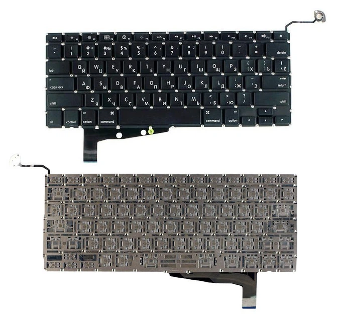 Клавіатура для Apple MacBook Pro (A1286) (2011, 2012 року) з підсвіткою (Light), Black, (No Frame), без (SD), RU (горизонтал