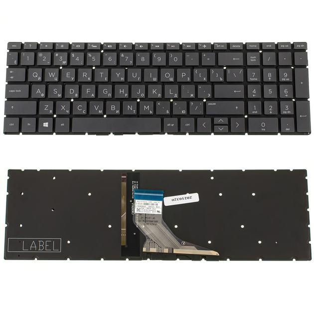 Клавіатура до ноутбуку HP (250 G7, 255 G7 серій) rus розкладка, чорний колір, без фрейму, підсвітка клавіш (Оригінал)