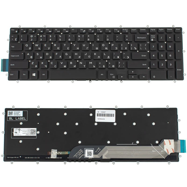 Клавіатура до ноутбуку DELL (Inspiron: 7566, 7567) rus розкладка, чорний колір, без фрейму, підсвітка клавіш (Оригінал)