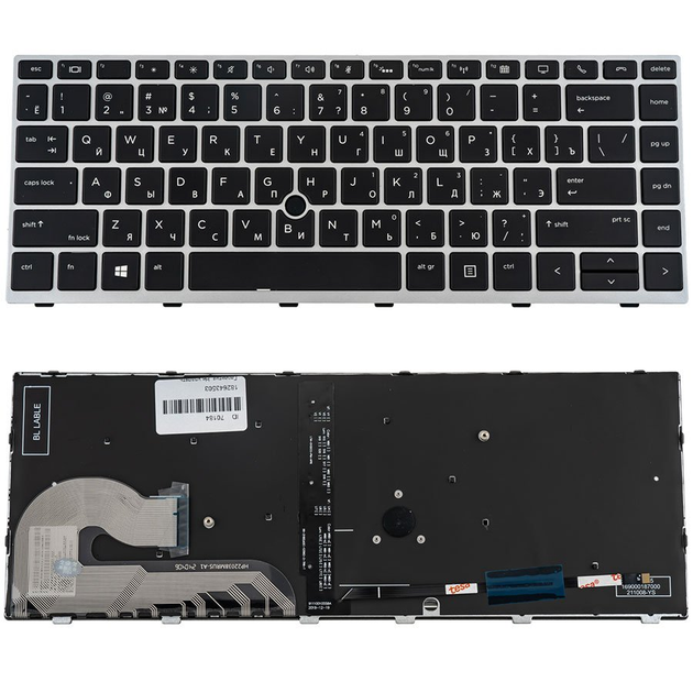 Клавіатура до ноутбуку HP (EliteBook: 740 G5, 840 G5) rus розкладка, чорний колір, підсвітка клавіш, без джойстика