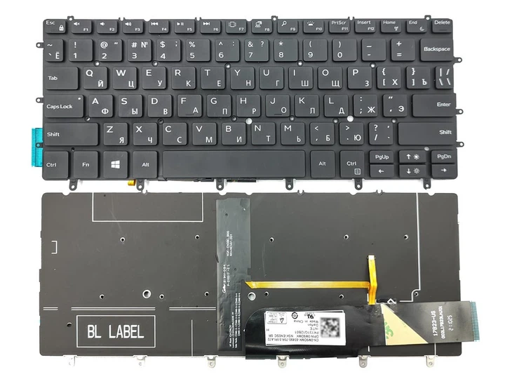 Клавіатура для DELL XPS 13 9370, 13 9380, 13-9370, 13-9380 ( RU Black з підсвічуванням) Оригінал.