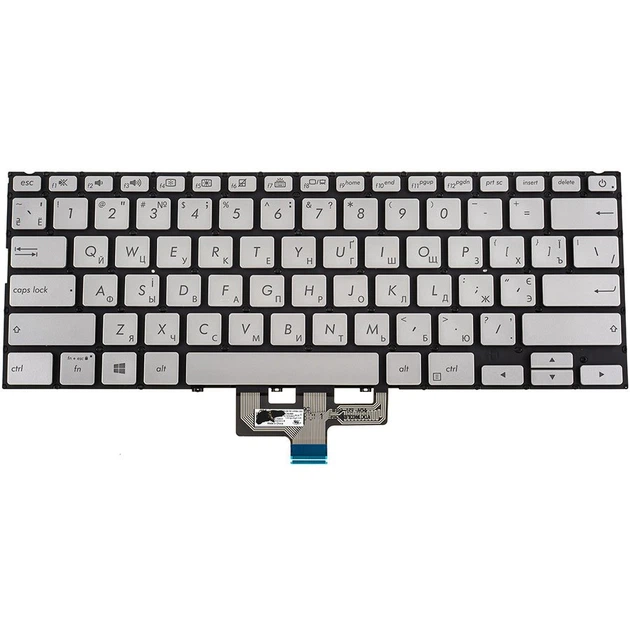 Клавіатура до ноутбуку ASUS (UX433 серій) українська розкладка, сріблястий колір, без фрейму, підсвітка клавіш (Оригінал)