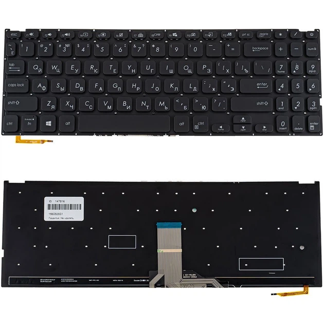 Клавіатура для ноутбука ASUS X509 series rus, чорна, без фрейма, підсвічування клавіш