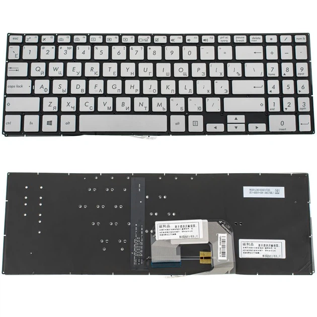 Клавіатура до ноутбуку ASUS (UX561 серій) rus розкладка, сріблястий колір, без фрейму, підсвітка клавіш