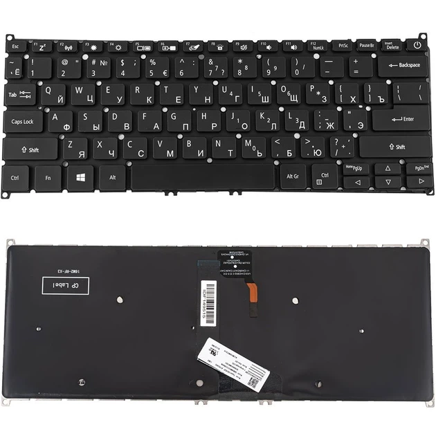 Клавіатура до ноутбуку ACER (AS: SF514-56) rus розкладка, чорний колір, без фрейму, підсвітка клавіш (Оригінал)