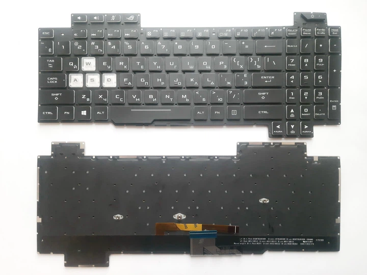 Клавіатура для ноутбуків Asus ROG Strix SCAR II GL704 чорна без рамки, з різнобарвним підсвічуванням RU/US