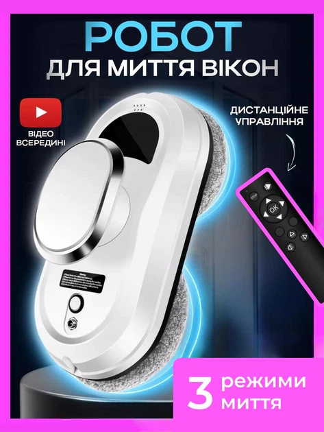 Робот для миття вікон розумний з пультом дистанційного керування мийник склоочисник віконний пилосос щітка для миття окон ми