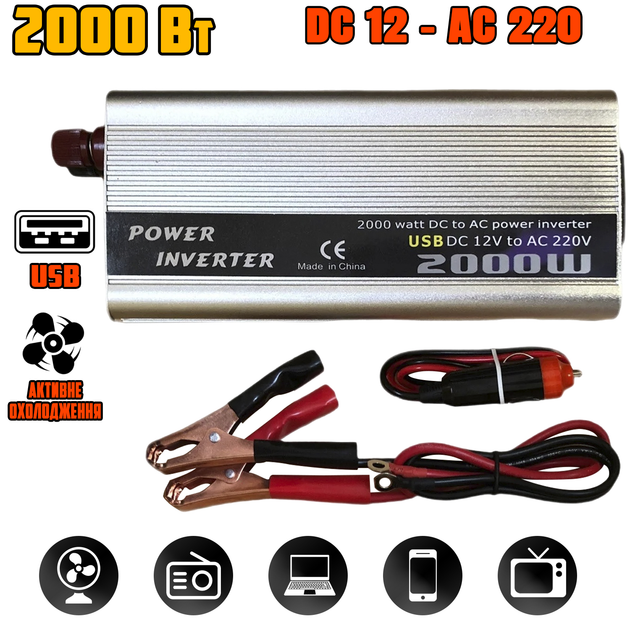 Інвертор з розеткою та USB Lvyuan F-2000A 2000 W 12-220 V (489469)