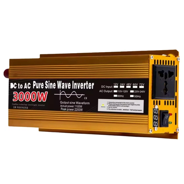 Інвертор з чистою синусоїдою ChanTower 3000 Вт 12/220V DC/AC 50Hz для живлення газових котлів та твердопаливних котлів, блен