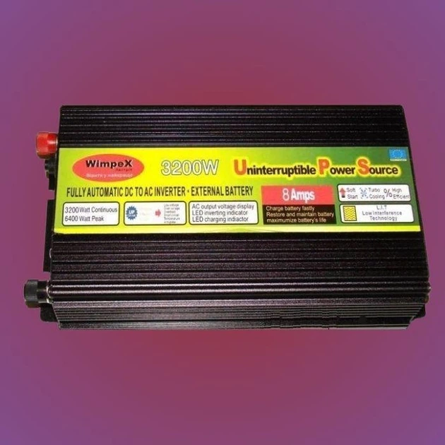 Перетворювач напруги WimpeX 3200W UPS 12-220V Автомобільний інвертор тип DC/AC з USB WX-3200VS