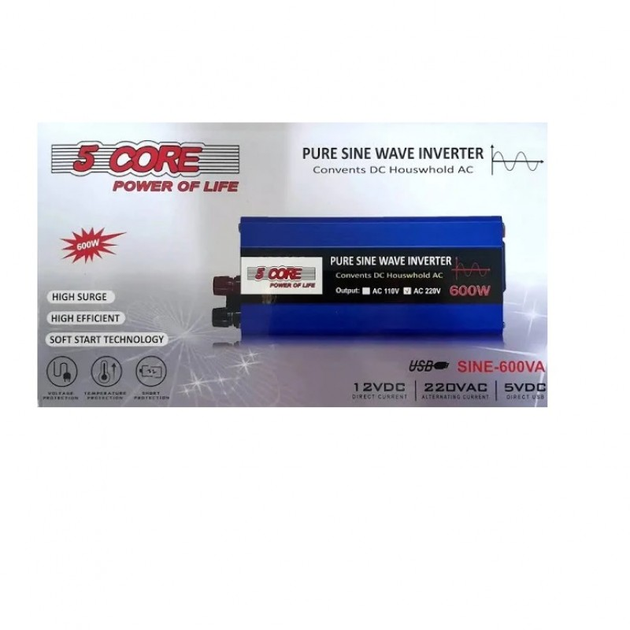 Перетворювач із чистою синусоїдою AC/DC 600W Інвертор напруги 12V-220V правильною синусоїдою