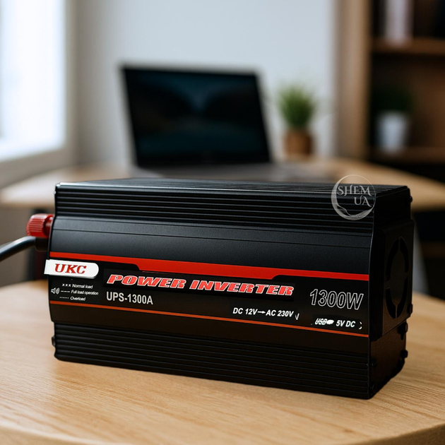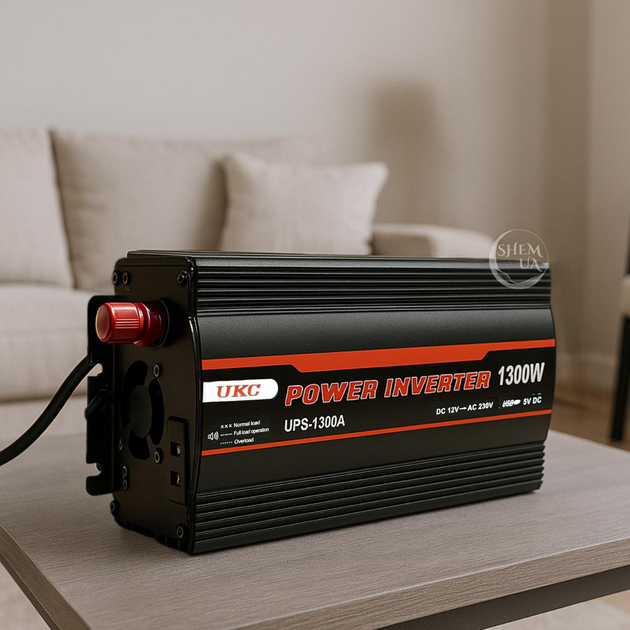 Інвертор 12В 220В 1300 Вт UKC з модифікованою синусоїдою, автомобільний перетворювач напруги з автоматичною зарядкою та USB