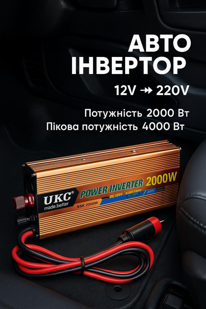 Авто інвертор 12V-220V автомобільний інвертор портативний перетворювач напруги 2000W UKC SSK AC/DC