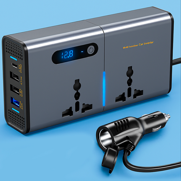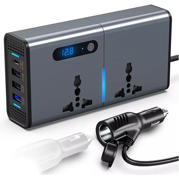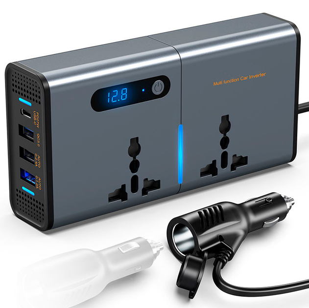 Автомобільний інвертор з дисплеєм 200 Вт 12 В із швидкою зарядкою QC та PD, 4 порти USB