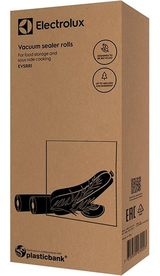 A4), який придатний для вторинної переробки згідно з EN 13430 (еквівалент DIN EN 13430) ***Порівняно з пакетами для вакуумування Electrolux EVSB1. Вироблено зі скороченим на 40% викидом CO22 Нові рулони пакетів для вакуумування Electrolux, придатні для вторинної переробки, виробляються за зменшеного на 40% викиду CO2, порівнюючи з попередніми рулонами пакетів для вакуумування Electrolux. *Згідно з оцінкою життєвого циклу (Life Cycle Assessment, LCA), проведеною Electrolux 3. Порівняно з рулонами пакетів для вакуумування Electrolux EVSR1 Без БФА й безпечний для продуктів Для виробництва використовується нетоксичний і безпечний для продуктів матеріал без хімічного клею. ]]>