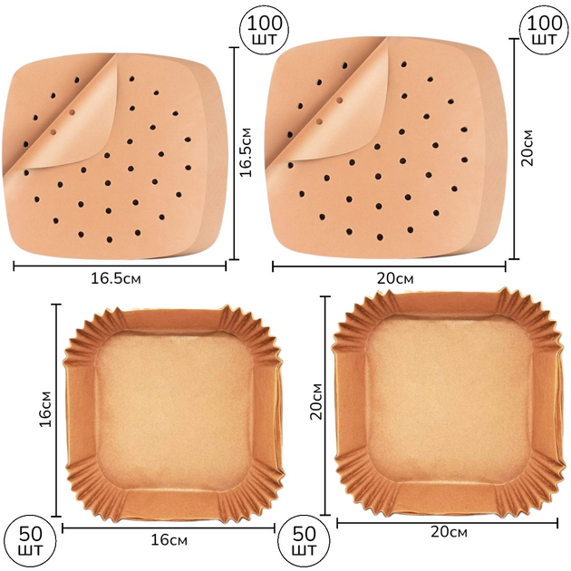 Набір форм пергаментних для аерогрилю, мультипечі Kraft 100 шт 16 х 4.5 см, 20 х 4.5 см Квадратні