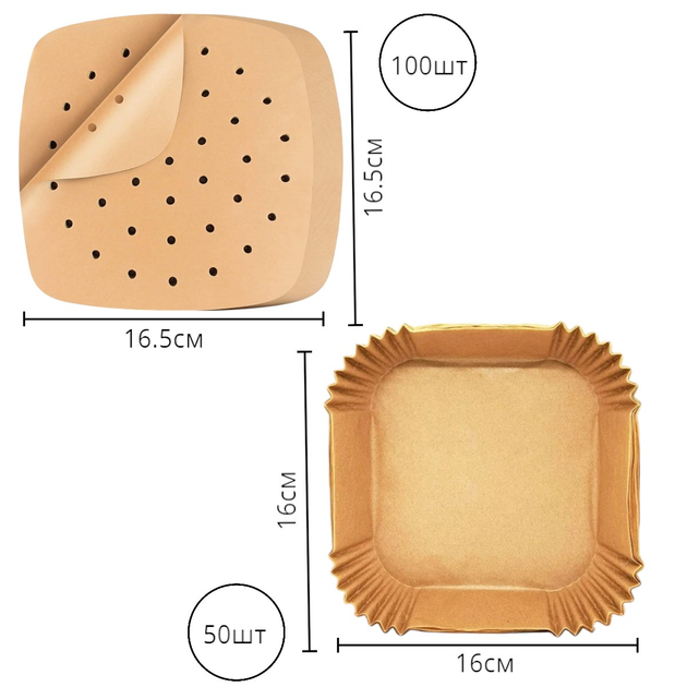Набір пергаментних аксесуарів для аерогрилю Kraft вкладиші 100 шт 16.5 см + форми 50 шт 16 см
