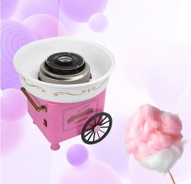 Апарат Cotton Candy Maker для приготування цукрової вати з коліщатком рожевий