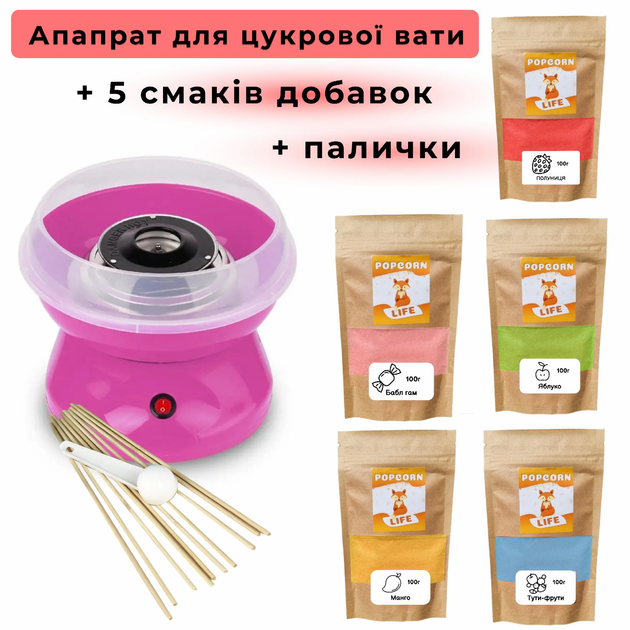 Комбо Солодка цукрова вата Апарат для солодкої вати + 5 ароматизаторов по 100г