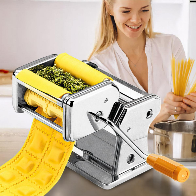 Машинка для розкатування тіста з насадкою для равіоль 2в1, з 9 режимами товщини тіста та фіксатором на стіл, для приготуванн
