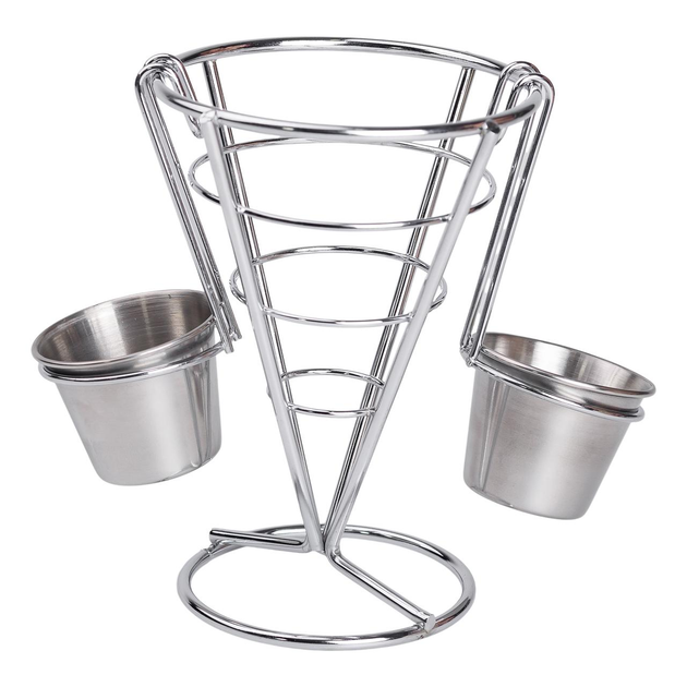Кошик для картоплі фрі та снеків з 2 соусниками 50 мл конусний 15х15х13.5 см HP-19-7