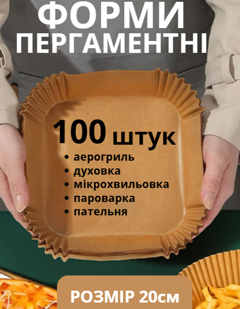 Форми пергаментні квадратні 20 см 100 шт MELV пергамент для аерогрилю для запікання та випікання одноразові