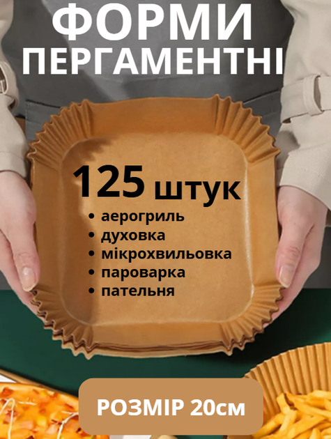 Білосніжні пергаментні форми, для аерогрилю та мультипечі - 16 (20)х4.5 см, 125 штук в упаковці (вкладки, серветки)