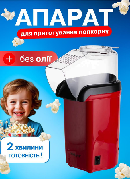Попкорніца електрична Sokany SK-07045 для дому 1200Вт з чашею на 500 мл Червона