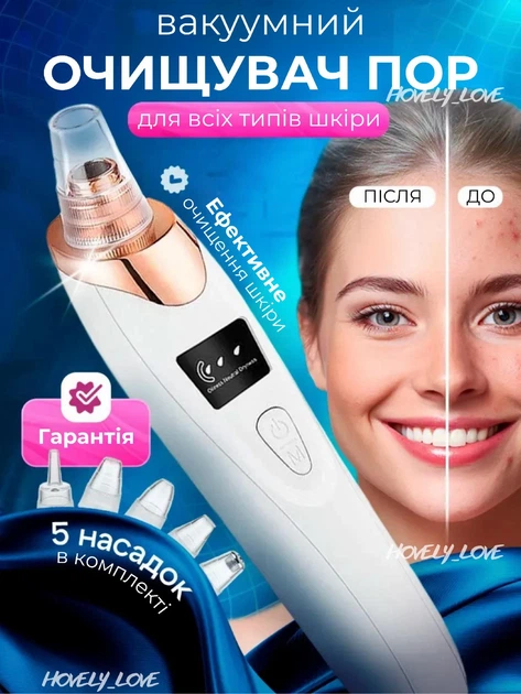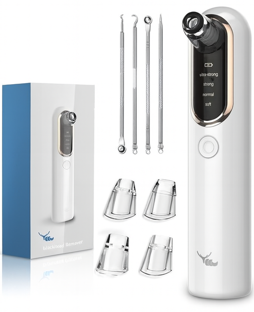 Косметологічний вакуумний апарат для чищення обличчя білий 5 режимів + 4 насадки