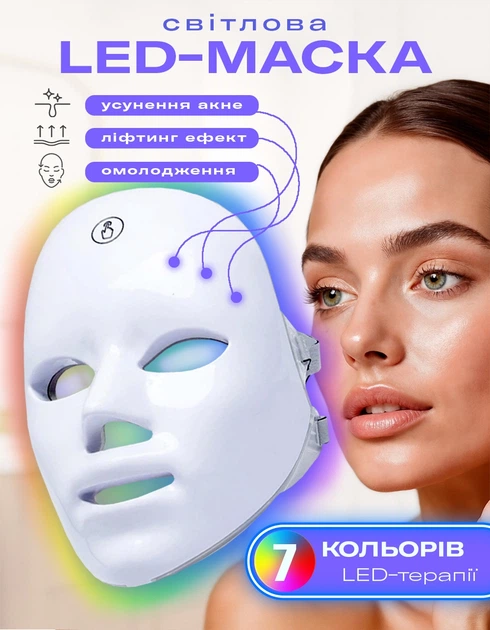 Світлодіодна LED маска для мікрострумової фототерапії Лед маска для ліфтингу омолодження 7 кольорів