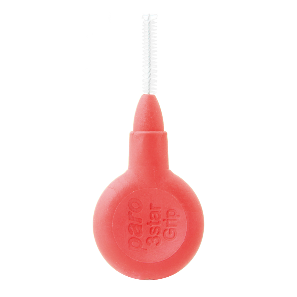 Це практичне, універсальне, дієве рішення для видалення зубного нальоту та залишків їжі з міжзубних проміжків. Представлений пристрій ідеально очищає й широкі, і вузькі проміжки між зубами, елементи брекетів, мостів або імплантатів. Він належить до нового покоління міжзубних щіток, розроблених за формою міжзубних проміжків, завдяки чому використання дуже комфортне. Трикутна форма щітки дає змогу досягти кращої очисної дії, як порівняти з подібними пристроями круглої форми. Paro 3STAR-GRIP надійно фіксується в руці та забезпечує впевнений контроль у порожнині рота. Вона має перехрещену форму щетинок, завдяки якій легко проникає навіть у важкодоступні місця. Також представлений продукт вирізняється наявністю захисного пластикового покриття стрижня, що запобігаю пошкодженню зубів і ясен. Ця міжзубна щітка виготовлена в червоному кольорі, дуже тонка та м'яка, рекомендована в разі підвищеної чутливості ясен.