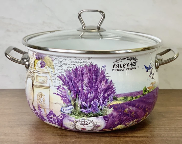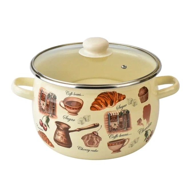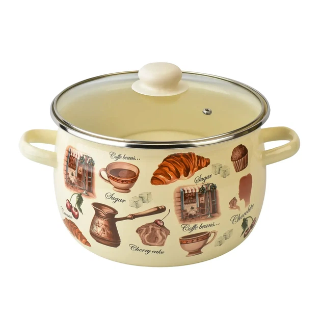 Каструля емальована зі скляною кришкою 5 л "Кафе де Шері"
