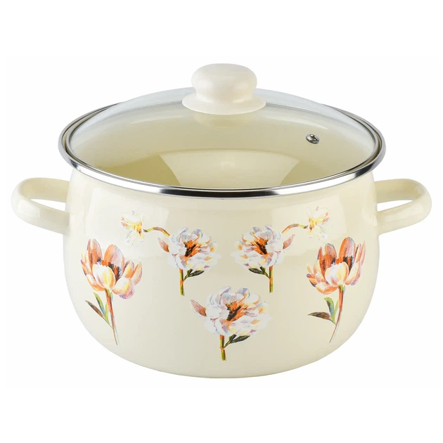 Каструля емальована зі скляною кришкою 5 л "Квіткова фантазія"
