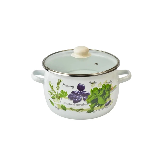 Каструля емальована зі скляною кришкою 5,0 л "Зелень фреш"