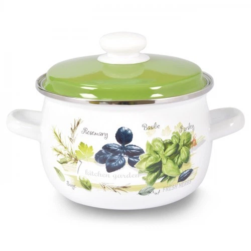 Каструля емальована з зеленою емальованою кришкою 3,5 л "Зелень фреш"