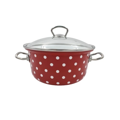 Каструля емальована зі скляною кришкою "Червона полька" 4 л