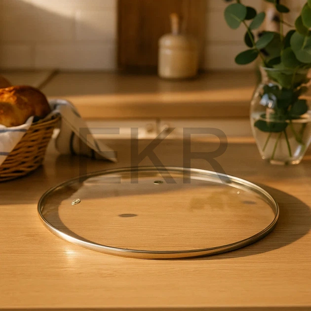 Кришка скляна з нержавіючим обідком без ручки 28 см FRU-997