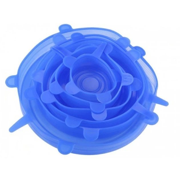 Універсальні круглі силіконові кришки для продуктів 6 шт Сині