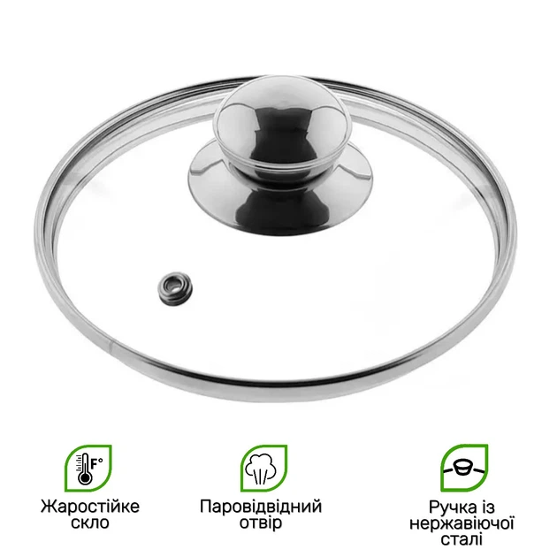 Середня скляна кришка 24 см з паровідведенням для кухонного посуду