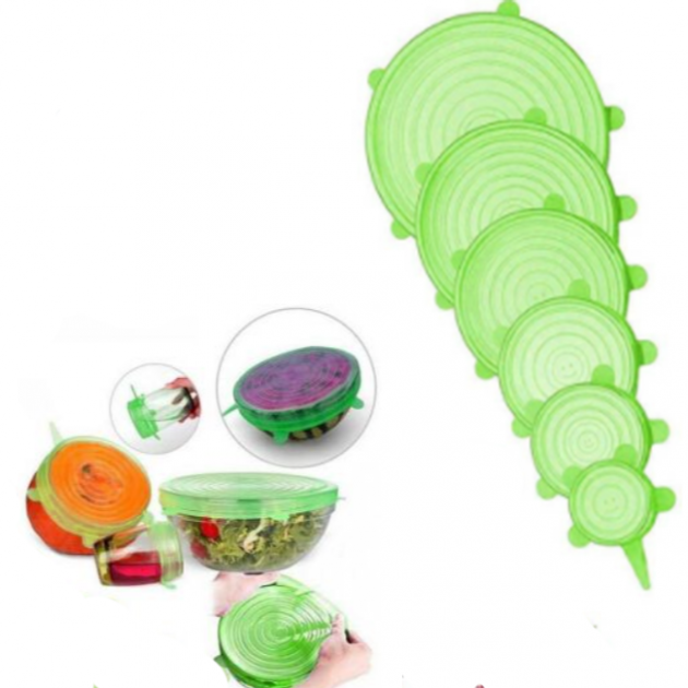 Набір силіконових кришок для посуду 6 шт універсальні зелений