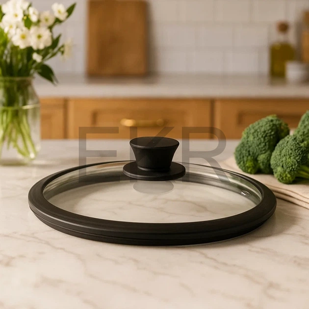 Кришка 22 см скляна з силіконовим обідком та ручкою FRU-984