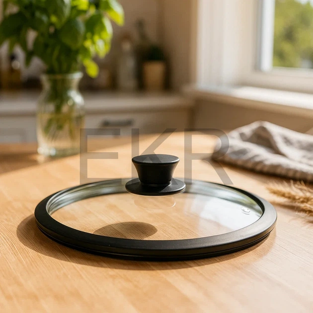 Кришка 20 см скляна з силіконовим обідком та ручкою FRU-983