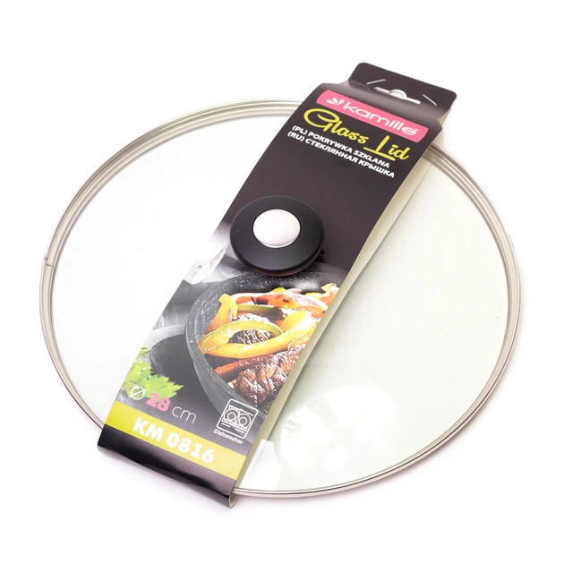 Кришка скляна Kamille 28см з металевим обідком KM-0816
