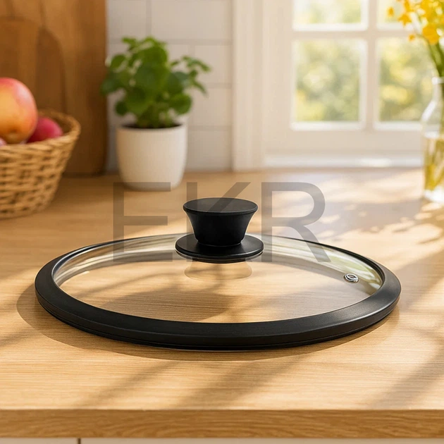 Кришка 24 см скляна з силіконовим обідком та ручкою FRU-985