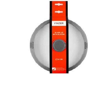 Кришка Vinzer із силіконовим обідком d28 см скло (89252 Vinzer)