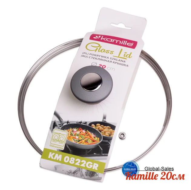 Кришка скляна з металевим обідком Kamille KM-0812 - 20см