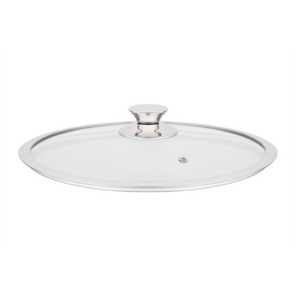 Кришка ARDESTO Gemini з отвором для відведення пари має діаметр 28 см. Вироблена з термостійкого скла, тож витримує високі температури та не деформується під час нагрівання. Руків’я з нержавіючої сталі не тільки додає виробу елегантності, але й гарантує довговічність і зручність у використанні. Допустиме миття в посудомийній машині.