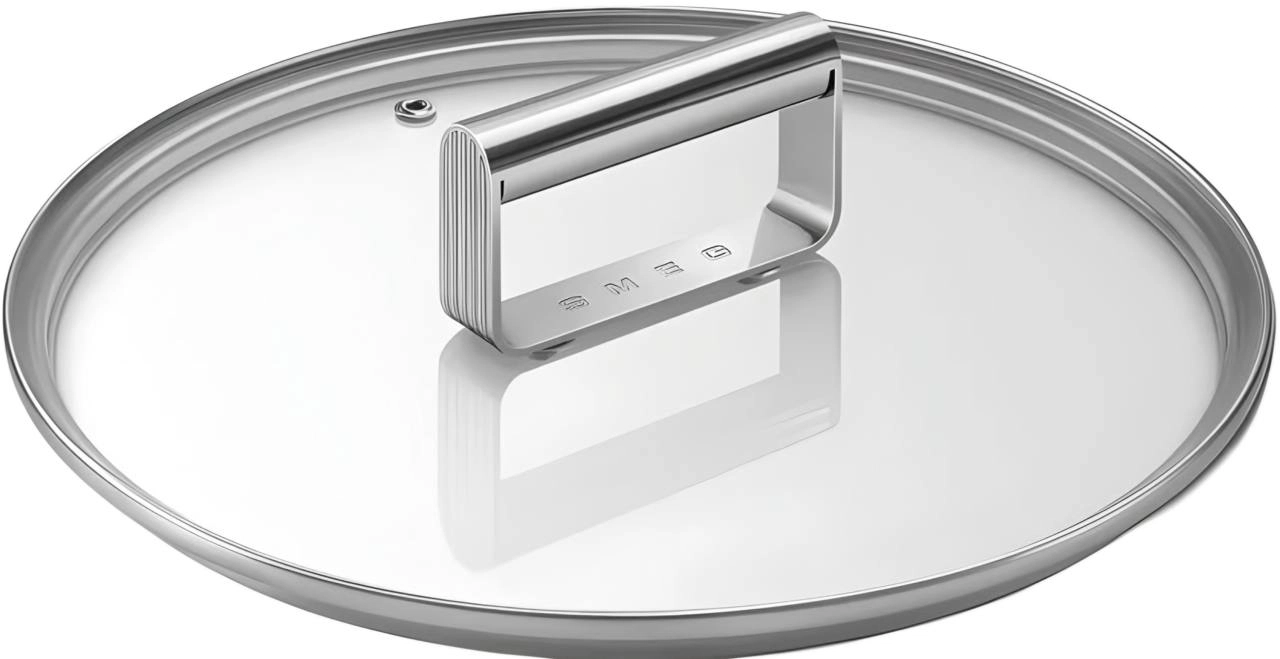 Кришка Smeg Скляна кришка Smeg — практичне і стильне доповнення до кухонного посуду. Вона виготовлена з міцного загартованого скла, яке дозволяє спостерігати за процесом приготування без необхідності піднімати кришку, зберігаючи тепло і вологу всередині. Металевий обідок підсилює конструкцію і захищає скло від відколів, а зручна ручка забезпечує безпечне і комфортне використання. Лаконічний дизайн у фірмовому стилі Smeg робить кришку не тільки функціональною, але й естетично привабливою. Підходить для щоденного використання при гасінні, варінні, тушкуванні та інших видах приготування, підвищуючи ефективність і зручність на кухні.