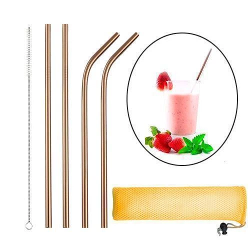 Набір із 4 металевих еко соломинок трубочок для напоїв, рожеве золото.